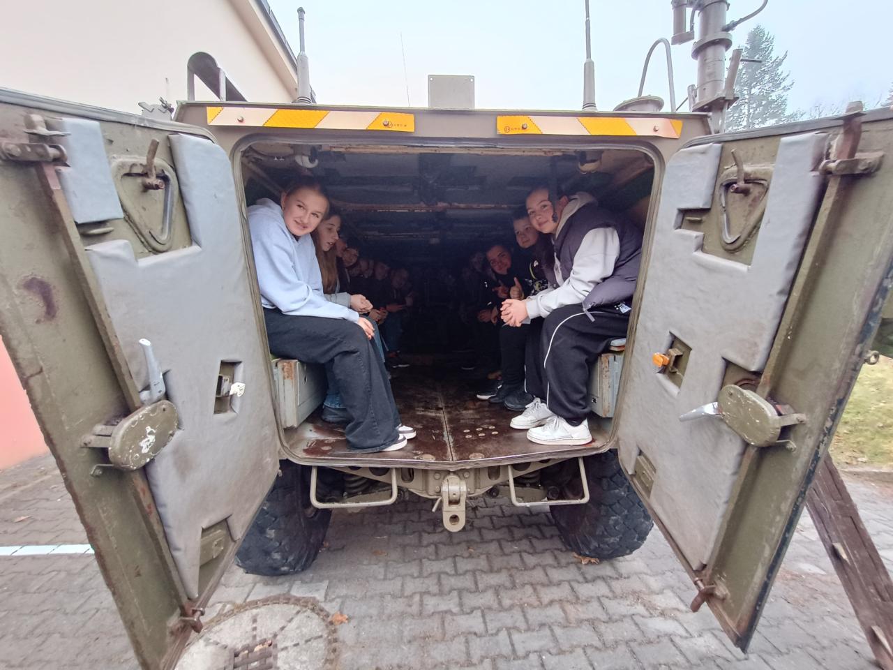 V areálu školy byl umístěn funkční obrněný transportér OT 64. Žáci dostali odborný výklad s ukázkou funkčnosti některých mechanizmů tohoto obojživelného transportéru. Mohli si vyzkoušet prostor řidiče i spolujezdce, stejně tak prostor pro osádku vozidla.