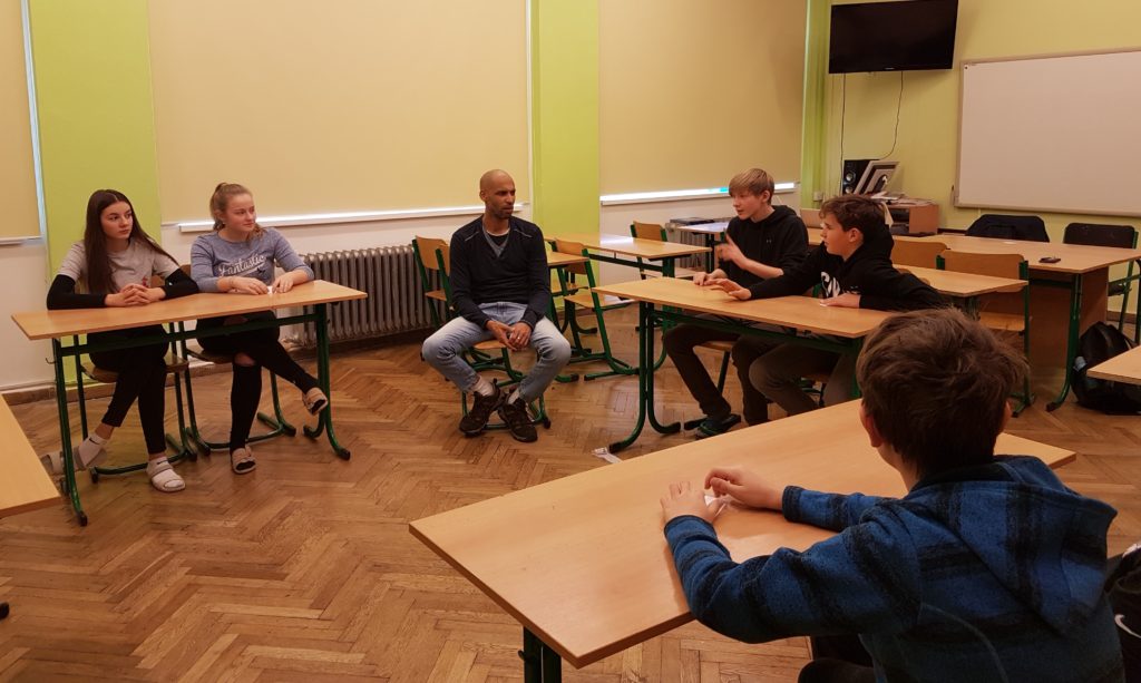 Už od čtvrtých tříd je výuka kmenových učitelů angličtiny doplněna o skupinovou výuku s rodilým mluvčím, která probíhá 1 x týdně. S naším lektorem Chrisem žáci pomocí her a konverzačních cvičení trénují fráze a slovní zásobu, která je součástí běžných hovorových situací.